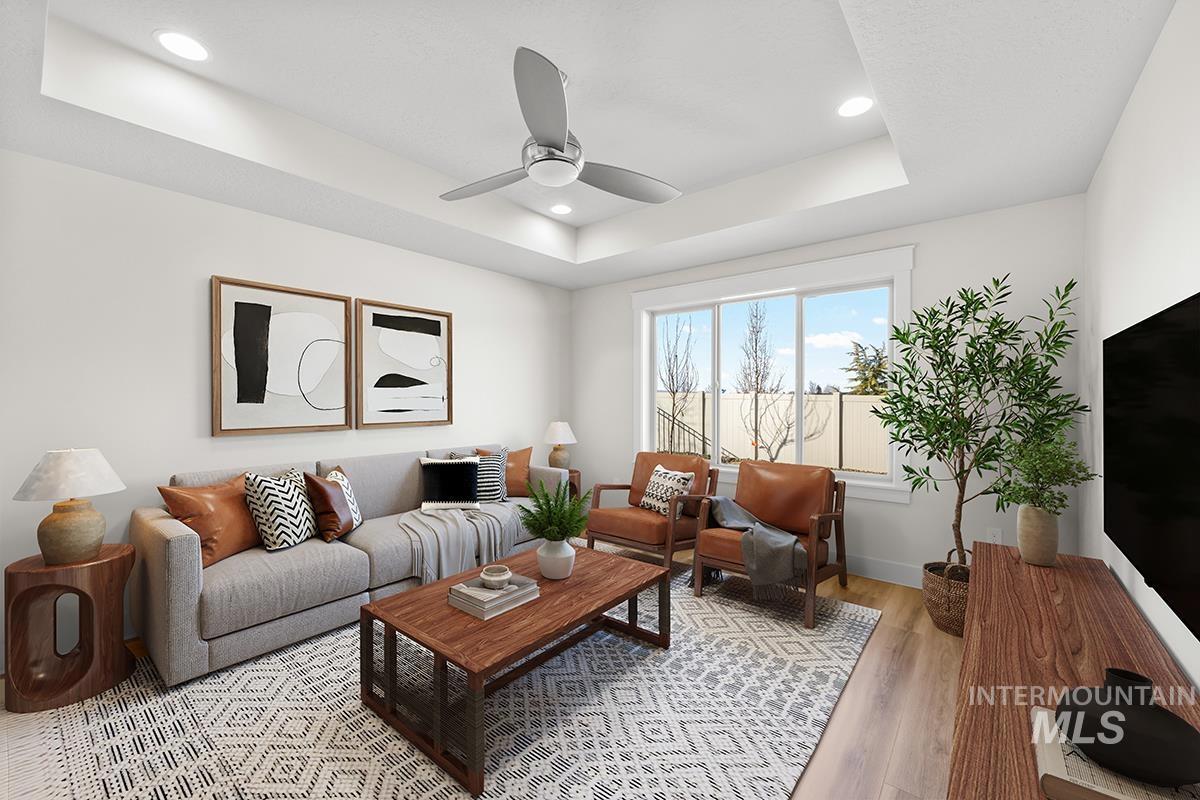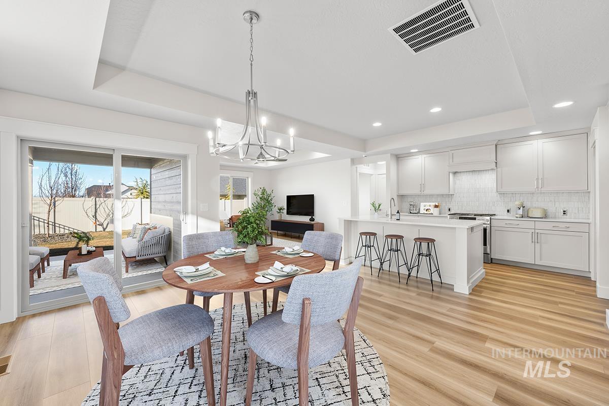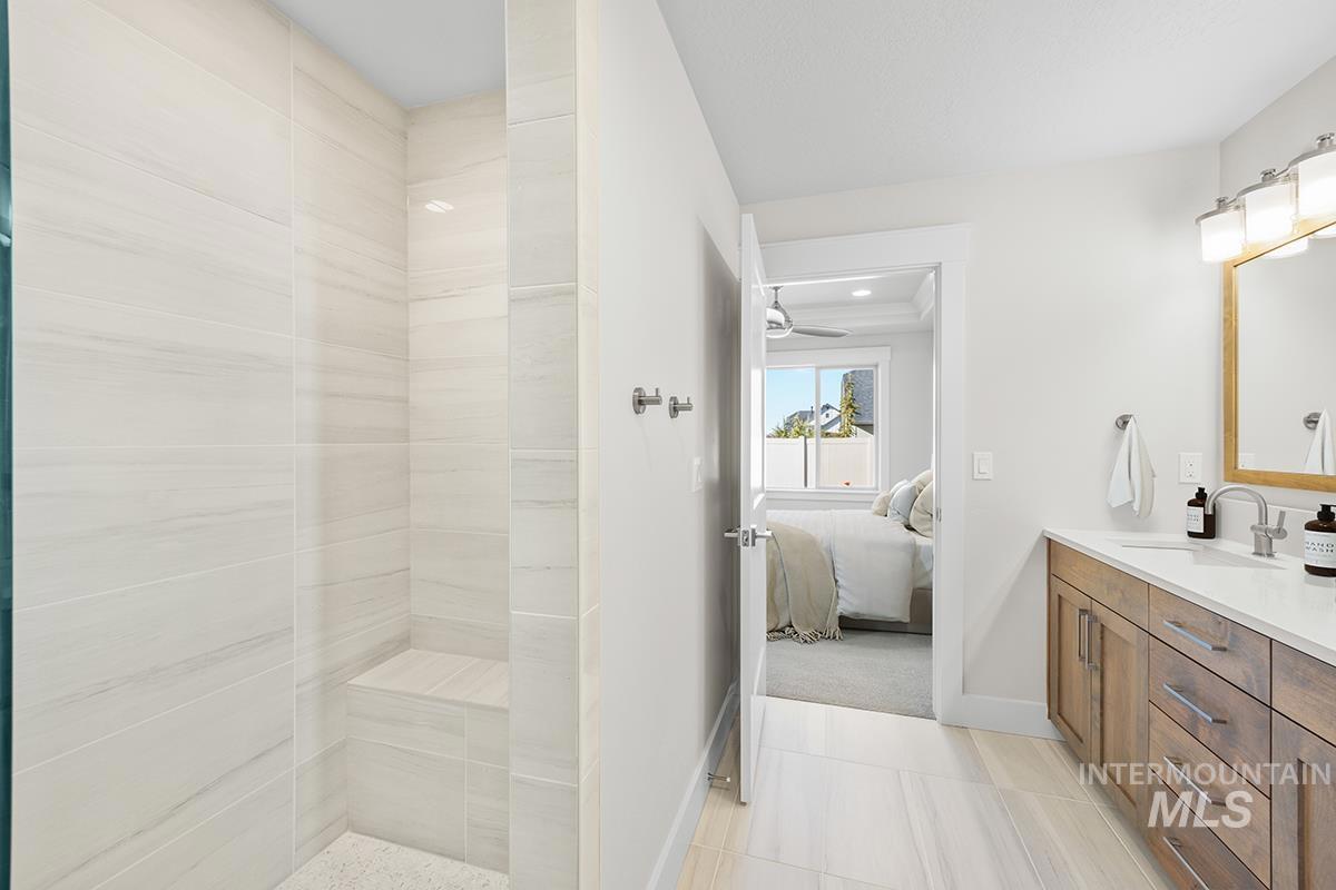 The HAVASU- SHOP MODEL| Blackrock Homes. Located on corner next to walking path & limited rear neighbors. Enjoy COMMUNITY POOL, pickle ball courts, walking paths, community dog parks & playground. Located in the gated neighborhood: The District at Skybreak Estates w/private pickle ball court, dog park & private streets. Featuring elevated finishes; upgraded cabinets, Bosch appliances, upgraded lighting plumbing & flooring. Baths feature tile floors, tile showers & under mount sinks. Generous sized great room, kitchen & dining room perfect for entertaining. Private guest suite & 3rd bdrm or office space gives you everything you need and nothing you don`t. Oversized garage w/additional 16` x5` shop space in garage- perfect for storage, work bench, home gym, etc. INCLUDES FULL VINYL FENCING & FRONT & REAR YARD SPRINKLERS & LANDSCAPING. Just Blocks away from Discovery park. Easy access to YMCA, the interstate, Meridian, shopping, dining, & entertainment.
