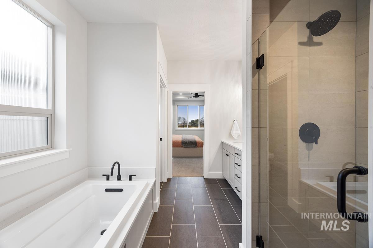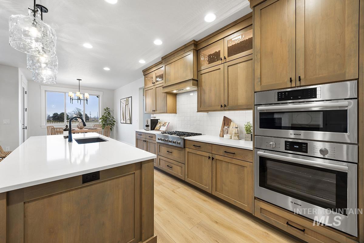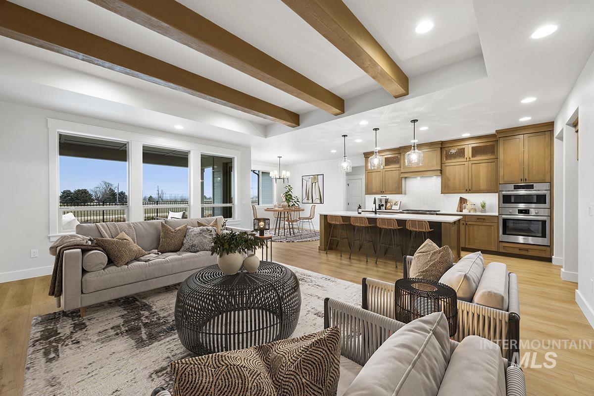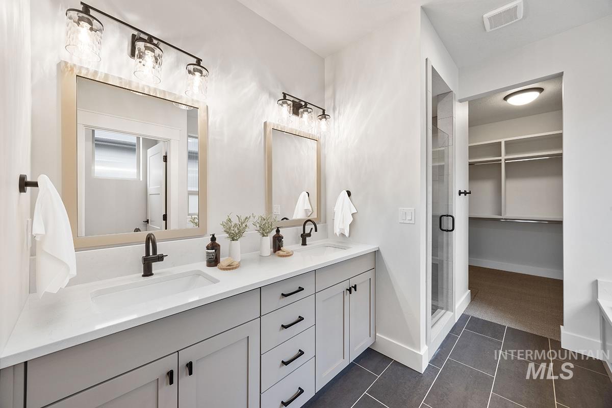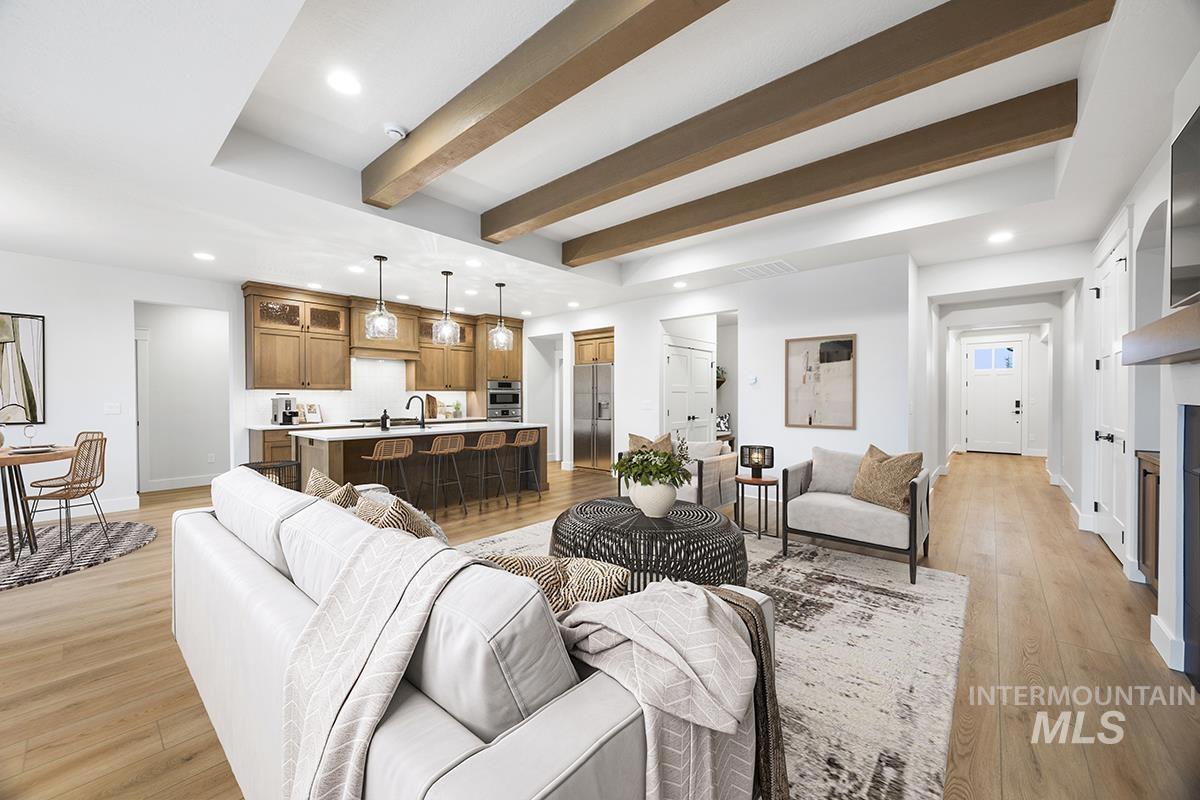 The GREYHAWK MODEL| Blackrock Homes. MOVE-IN-READY. South facing backyard & NO backyard neighbors! All new plan featuring 31` deep RV/Boat Bay with 9` x 11` door + additional shop/work area. East facing backyard. Apart of the Pinnacle Collection at Skybreak- Enjoy COMMUNITY POOL, pickle ball courts, playground + community dog parks! Upgraded finishes include custom cabinets, all quartz countertops, hardwood (lvp), upgraded trim detail including ceiling beams in living room, SS appliances including built-in 5 burner industrial gas range, built in Bosch oven, microwave & dishwasher. Walk-in butler`s pantry + tons of additional storage throughout. Light & airy floor plan w/lots of natural light & cozy fireplace. Tile floors in laundry, secondary & primary baths.