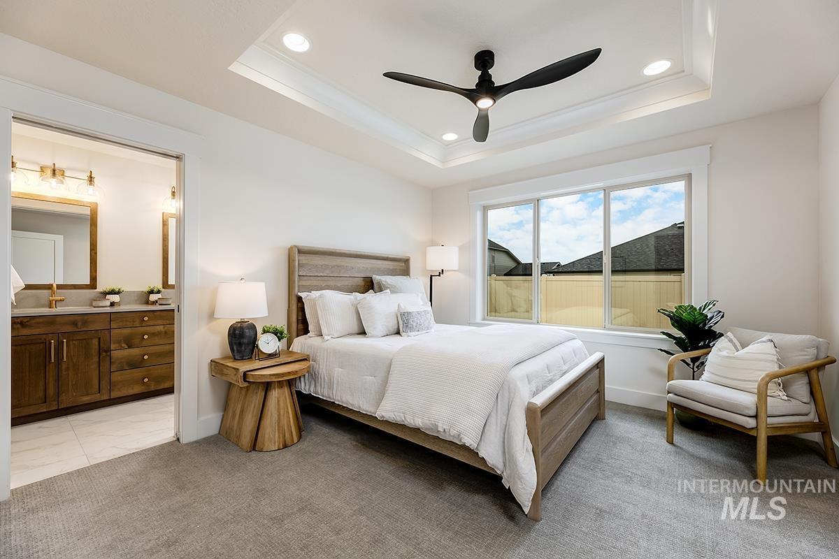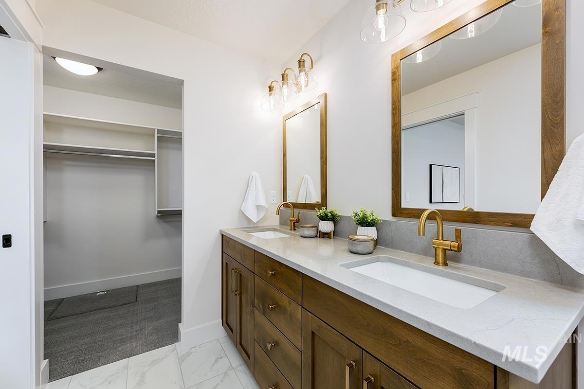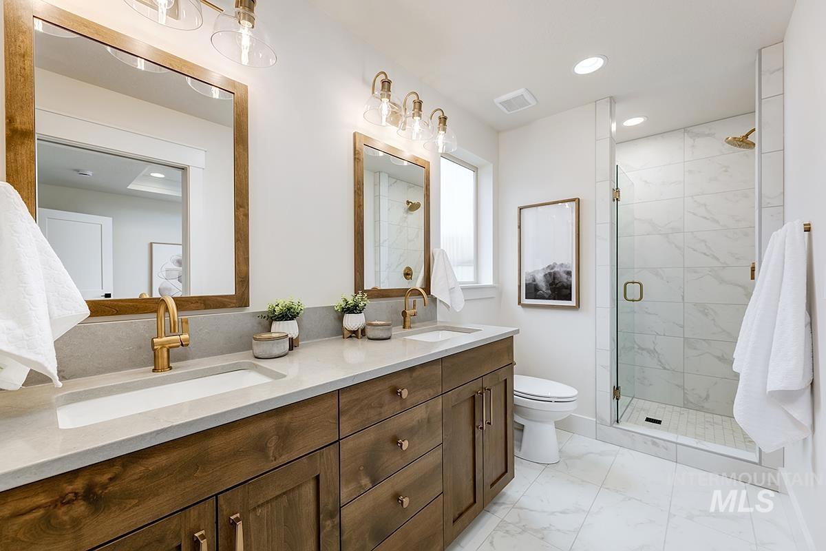 The BISBEE- 3-Car MODEL| Blackrock Homes. Located on corner homesite! Enjoy COMMUNITY POOL, pickle ball courts, walking paths, community dog parks & playground. Located in the gated neighborhood: The District at Skybreak Estates w/private pickle ball court, dog park & private streets. Featuring elevated finishes; upgraded cabinets, Bosch appliances, upgraded lighting plumbing & flooring. Baths feature tile floors, tile showers & under mount sinks. Generous sized great room, kitchen & dining room perfect for entertaining. Private guest suite & 3rd bdrm or office space gives you everything you need and nothing you don`t. 3 car garage. Keyless door lock on front. INCLUDES FULL VINYL FENCING & FRONT & REAR YARD SPRINKLERS & LANDSCAPING. Just Blocks away from Discovery park. Easy access to YMCA, the interstate, Meridian, shopping, dining, & entertainment. * Photos are similar only.